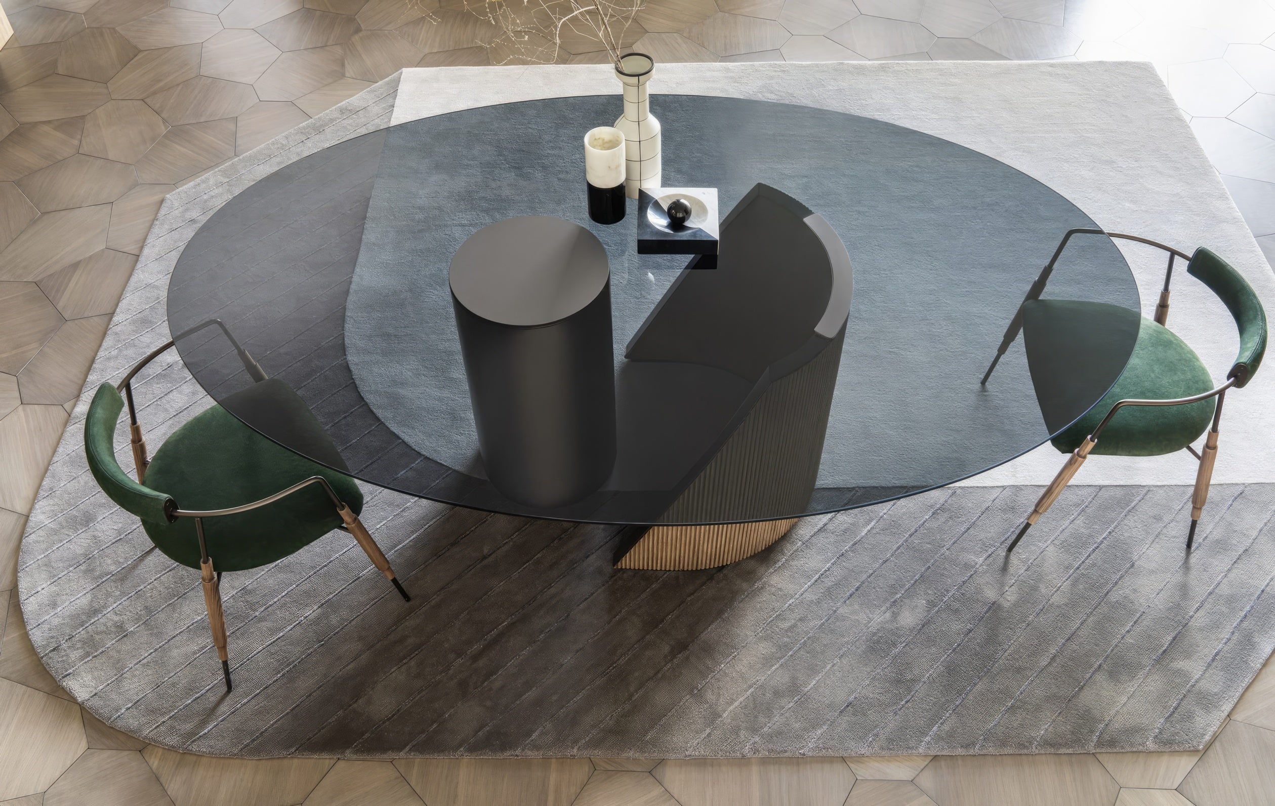 The Abel chair is featuring a light bronze metal structure that provides both stability and a modern aesthetic. Its wooden inserts enhance the natural appeal, while the green upholstered seat offers a vibrant touch, making it a perfect addition to any contemporary space.