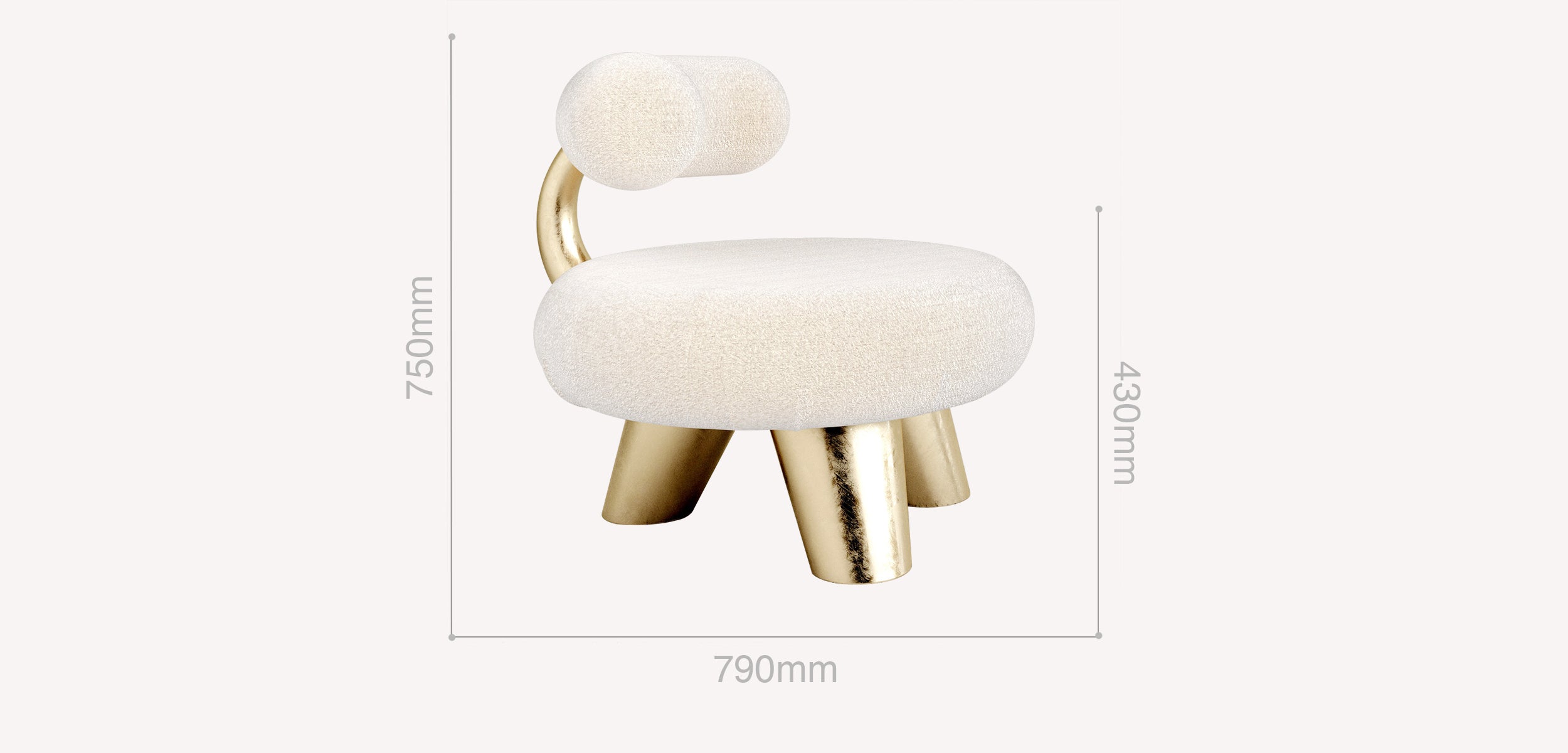 Crafted with stainless steel in brass finish and premium bouclé upholstery