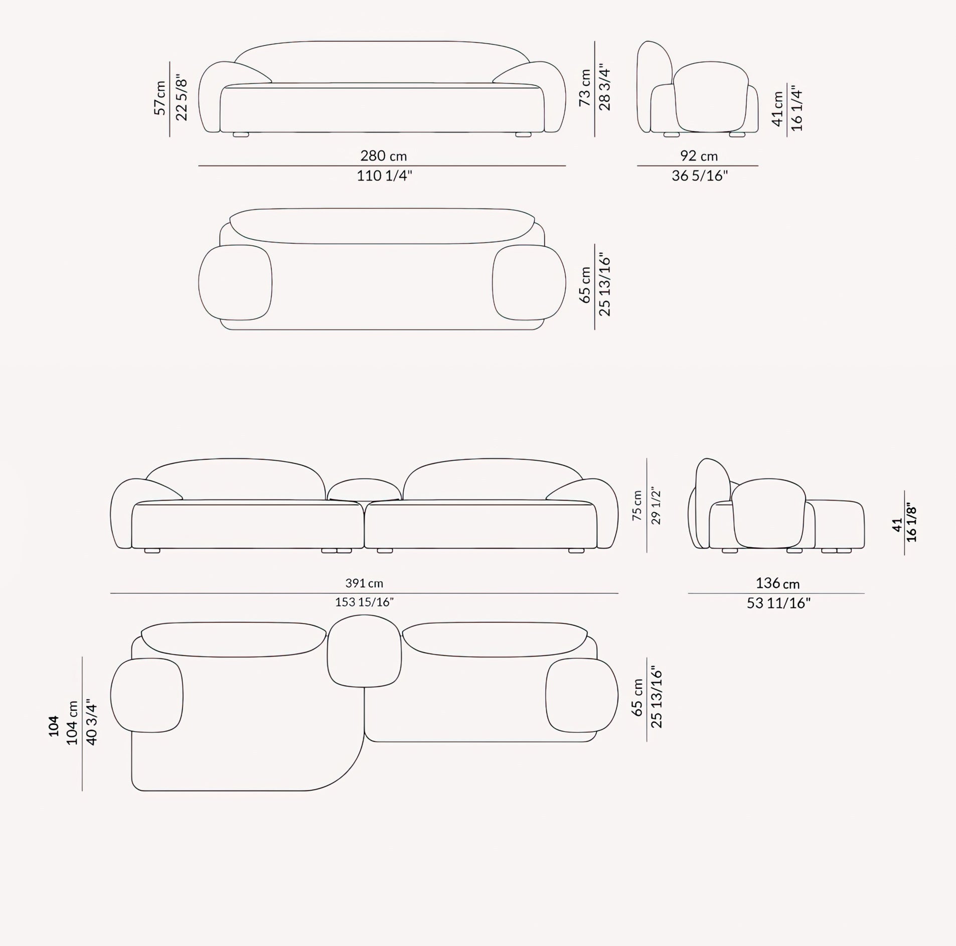 The Cos Sofa combines elegance with a touch of vintage charm, making it truly distinctive with its unique armrest design. The soft, flowing curves of the armrests blend seamlessly into the sofa’s silhouette, wrapping around the seat and extending gracefully to the floor. With its high seat and gently rounded backrest, the Cos Sofa offers an inviting, cozy feel that ensures exceptional comfort.