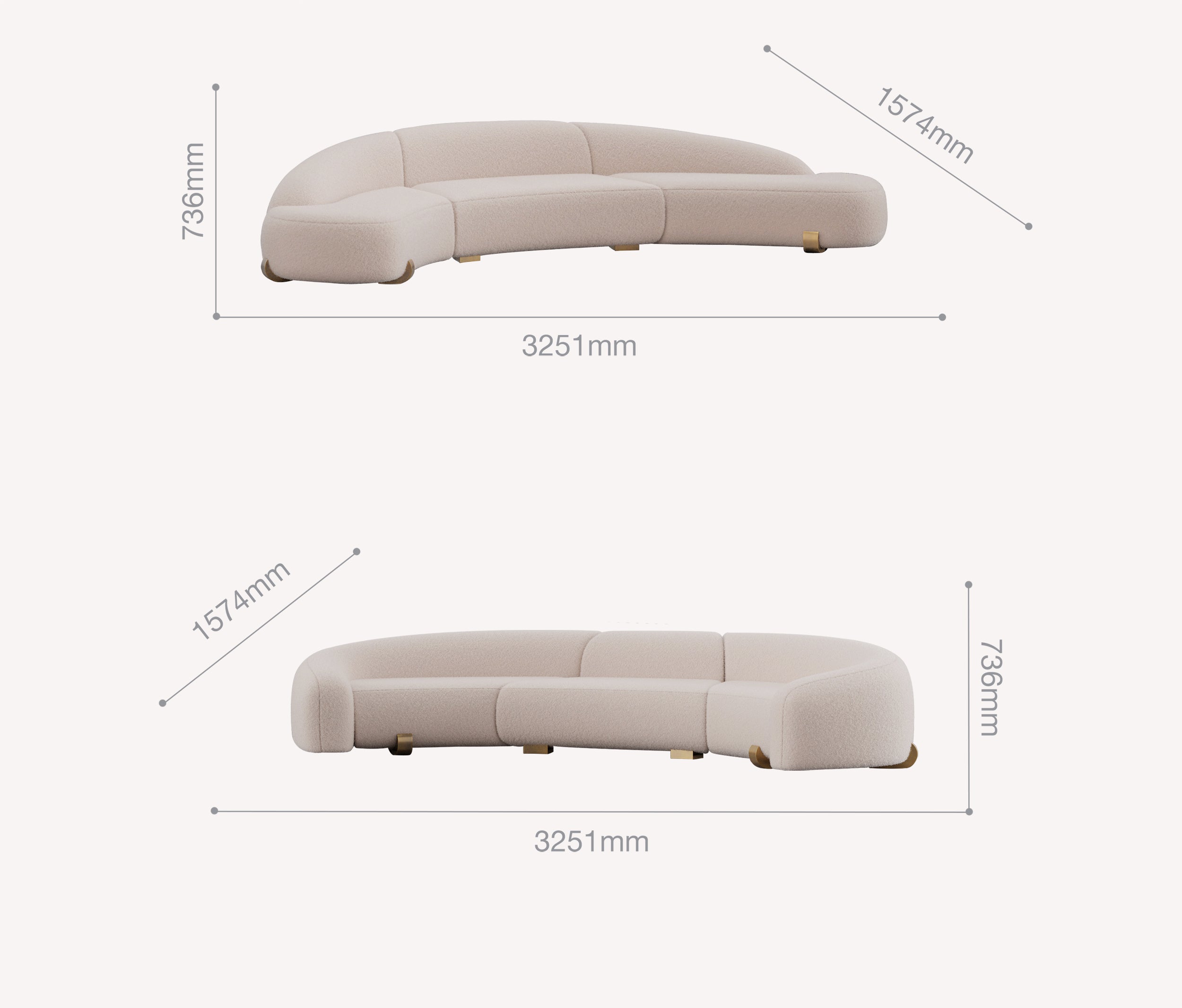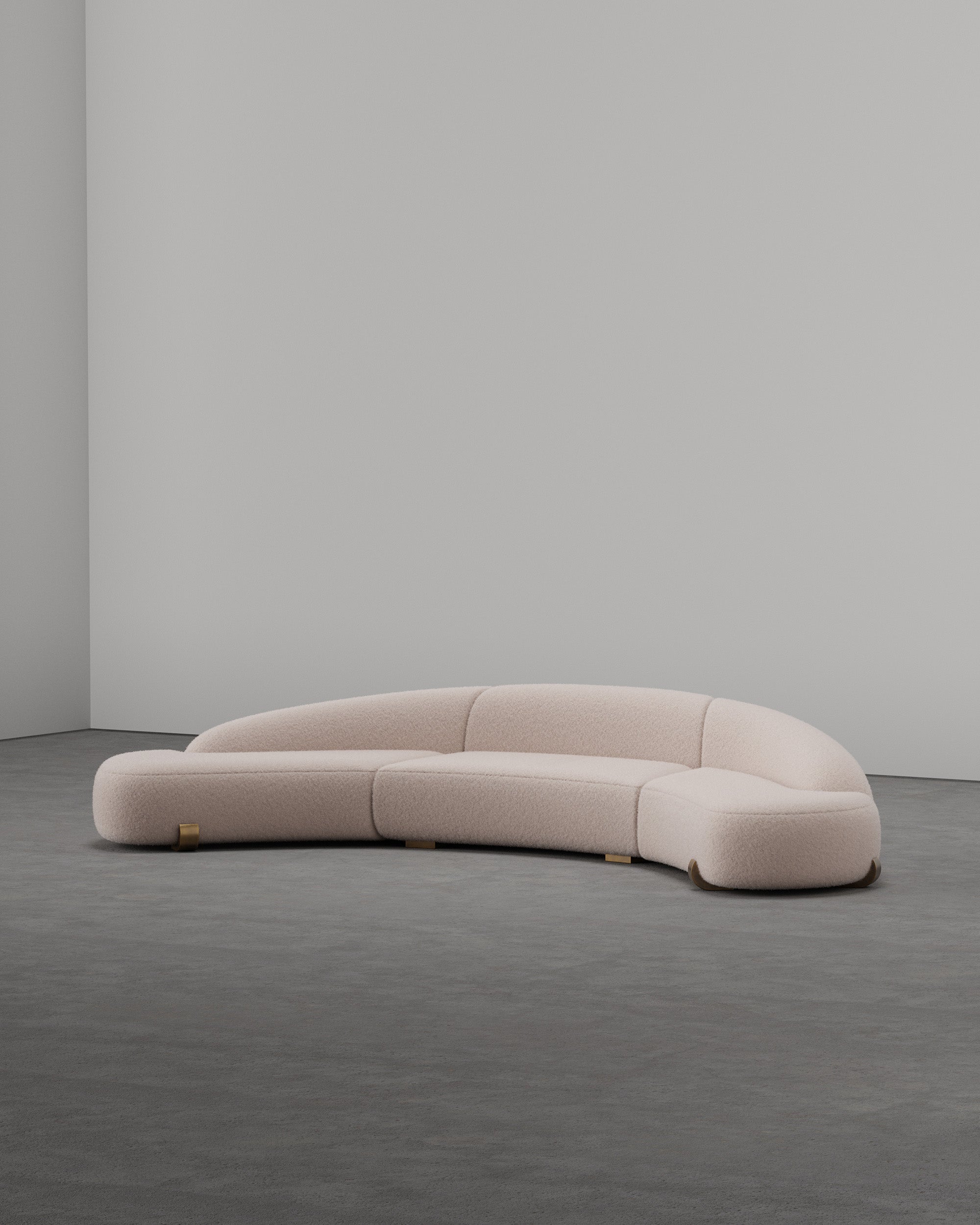 The Hedi sofa features a distinctive curved design with a gracefully contoured backrest, providing both aesthetic appeal and ergonomic support. Crafted with a sturdy wood frame, it ensures durability and stability, while the hand-tied coil spring seat offers exceptional comfort and resilience. High-density foam cushions enhance the seating experience, making it ideal for relaxation. The elegant bronze legs add a touch of sophistication, making the Hedi sofa a perfect addition to any modern living space.
