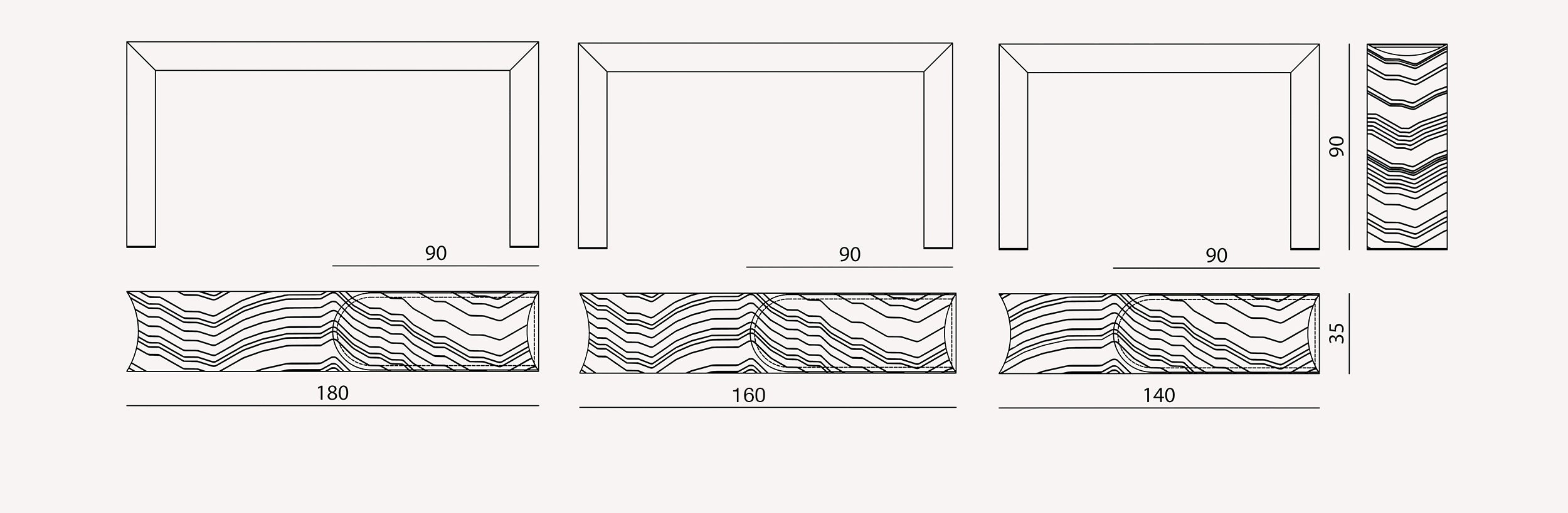 The Kose solid marble console consists of hand-polished concave top and legs. The inner part is covered with curved polished stainless steel. Part of the top is covered with a smoked glass top.