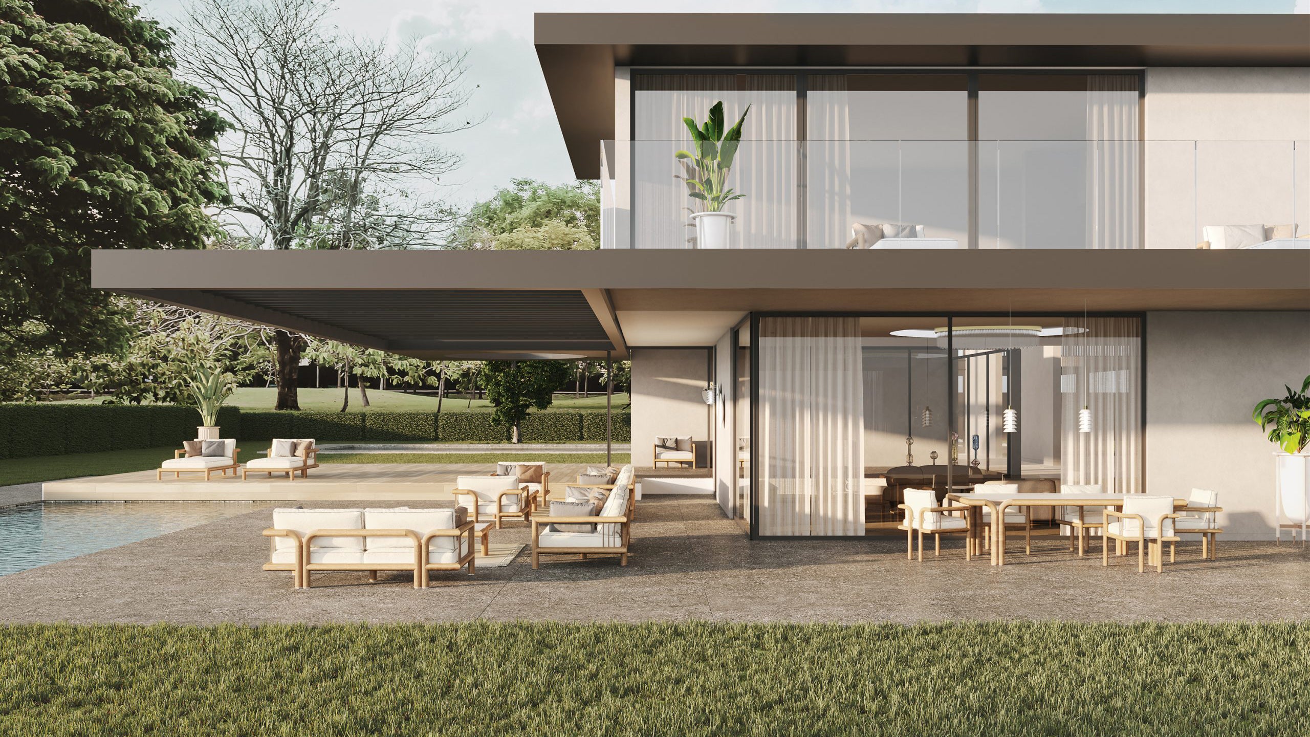The Nak Sofa seamlessly combines minimalist elegance with enduring functionality, making it a versatile addition to any space. Crafted from solid Iroko treated with natural oil, its linear structure exudes sophistication while ensuring durability. The seasoned wood enhances its resistance, making it particularly well-suited for outdoor environments.