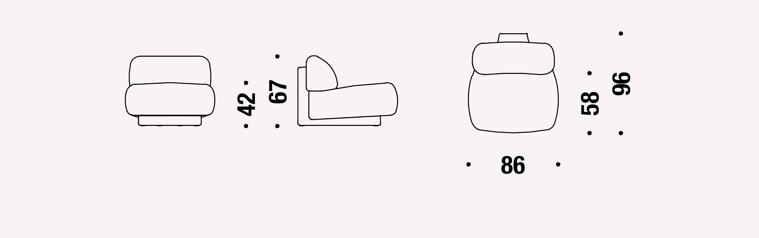The 70s inspired bouclé fabric enhances its organic shape, mimicking the texture of river stones. With its rich, free-flowing surface, the fabric hides seams, creating a smooth and cohesive look. Rio brings the calming essence of natural forms into any space, blending comfort with understated elegance.
