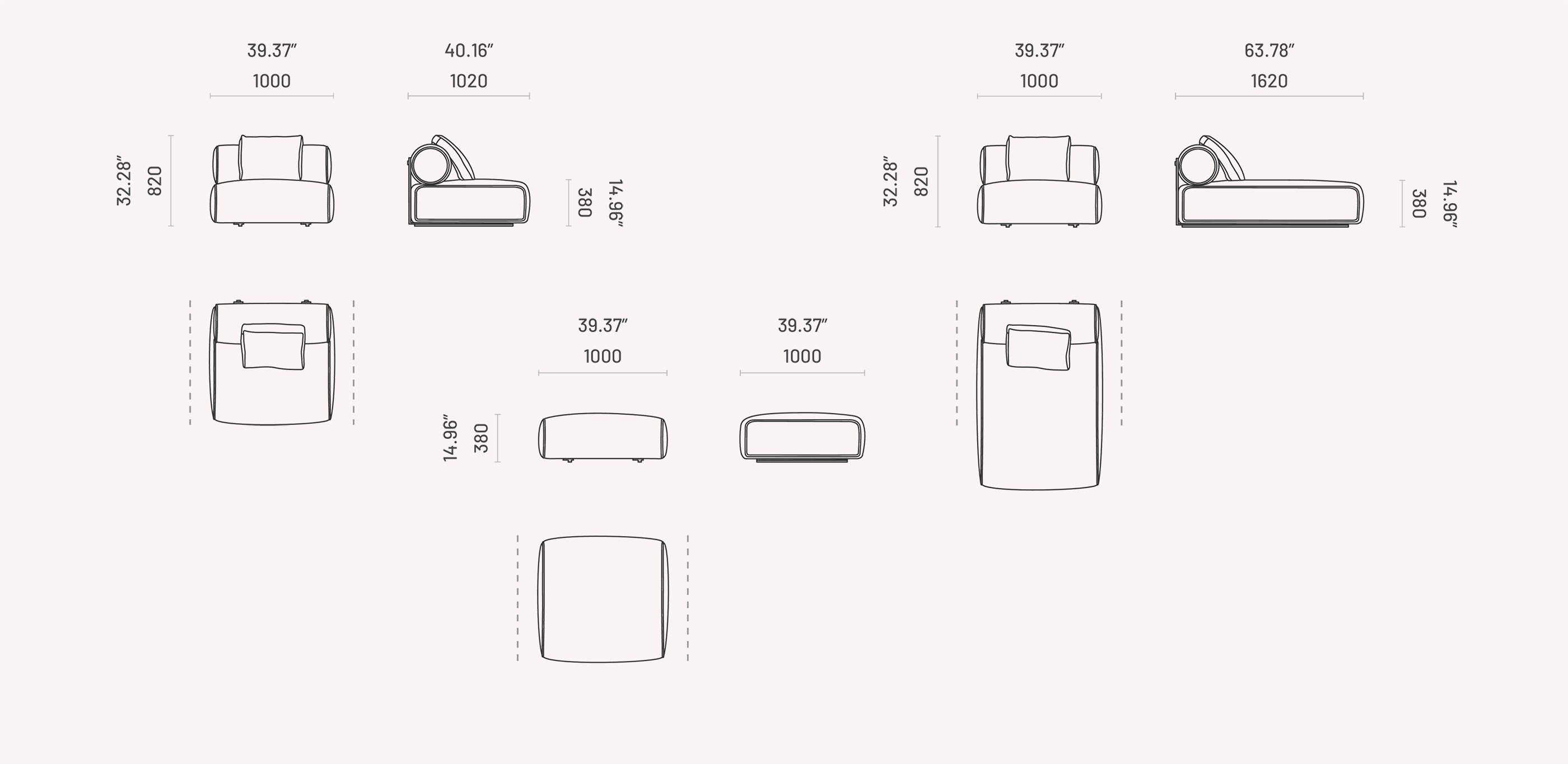 The Stella Sofa is a masterpiece of modular design, crafted to elevate your interior projects with style and adaptability. Its versatile configuration options—including a standalone chair, a chair with a chaise longue, and a pouf—allow you to create the perfect seating arrangement tailored to your space.
